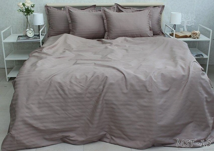 Комплект зі страйп-сатину-це один з видів постільної білизни преміум-класу, що відрізняється особливою технологією виготовлення. Виріб є бавовняним полотном, яке характеризується блискучими смужками на обох сторонах. Виготовляється страйп сатин з волокон бавовни 100%. Завдяки цьому тканина міцна, практична, приємна і м'яка.