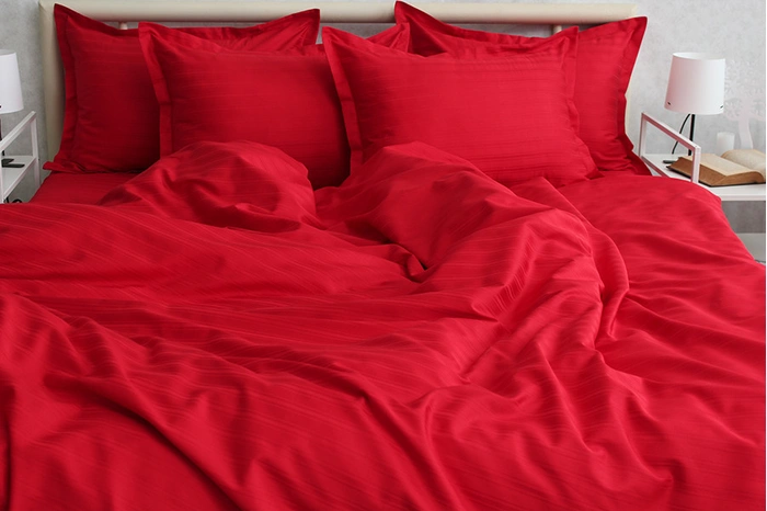 Комплект зі страйп-сатину-це один з видів постільної білизни преміум -класу, що відрізняється особливою технологією виготовлення Виріб є бавовняним полотном, яке характеризується блискучими смужками на обох сторонах. Виготовляється страйп сатин з волокон бавовни 100%. Завдяки цьому тканина міцна, практична, приємна і м'яка.