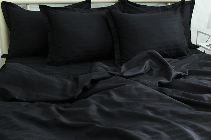 Комплект зі страйп-сатину-це один з видів постільної білизни преміум -класу, що відрізняється особливою технологією виготовлення Виріб є бавовняним полотном, яке характеризується блискучими смужками на обох сторонах. Виготовляється страйп сатин з волокон бавовни 100%. Завдяки цьому тканина міцна, практична, приємна і м'яка.
