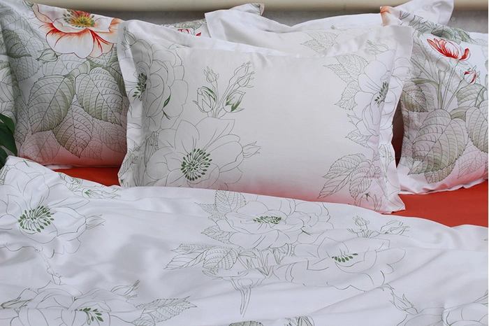 Рисунок на постільній білизні нанесений методом реактивного друку. Реактивне фарбування – унікальний метод нанесення малюнку, фарба проникає глибоко у волокна тканини та колір стає частиною полотна. Кольори насичені і не втрачають своєї яскравості під час експлуатації. Реактивне фарбування підходить для дорогих та нижніх тканин. Білизна не линяє при пранні.