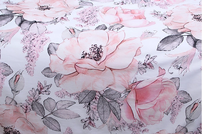 Рисунок на постільній білізні нанесений методом реактивного друку. Реактивне фарбування – унікальний метод нанесення малюнку, фарба проникає глибоко у волокна тканини та колір стає частиною полотна. Кольори насичені і не втрачають своєї яскравості під час експлуатації. Реактивне фарбування підходить для дорогих та нижніх тканин. Білизна не линяє при пранні.