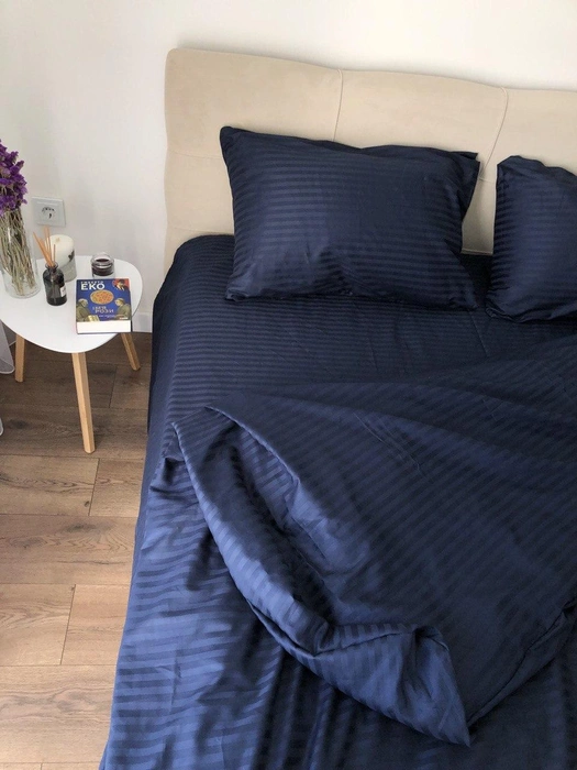 Комплект постільної білизни Страйп сатин Пивтораспальний