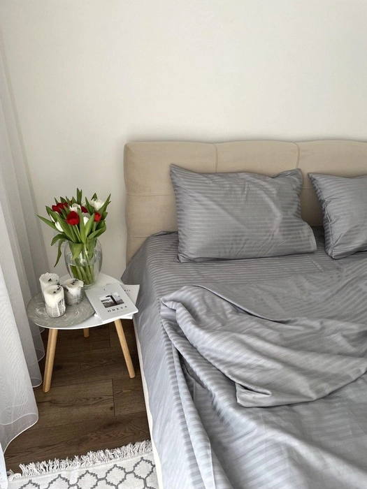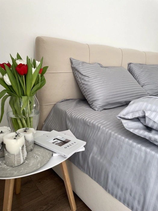 Комплект постільної білизни Страйп сатин Пивтораспальний