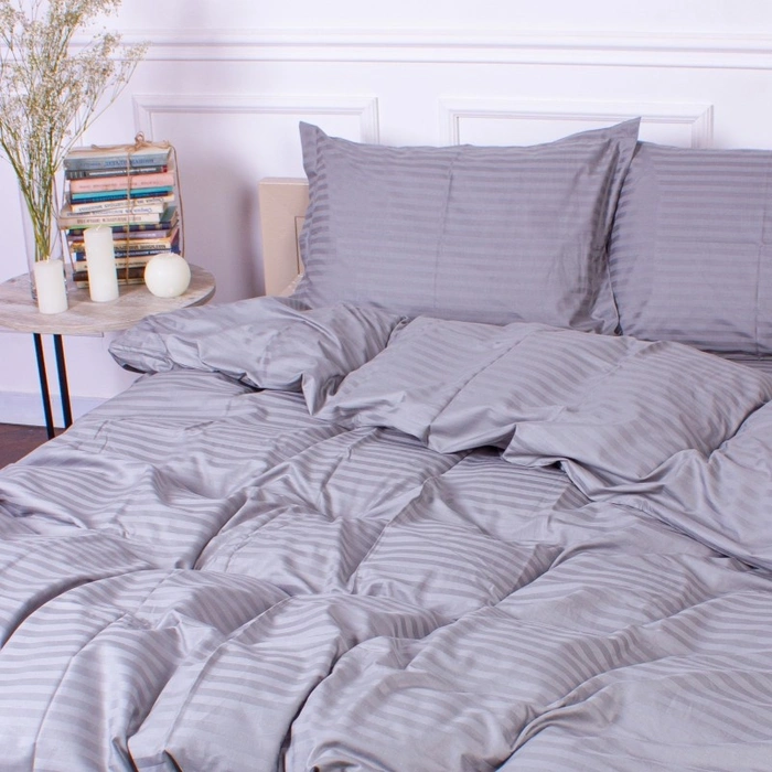 Комплект постільної білизни Страйп сатин Пивтораспальний