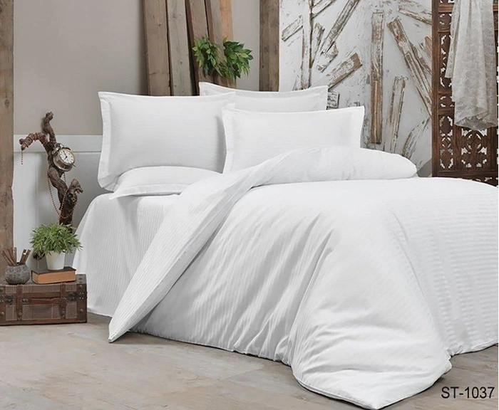 Комплект з страйп-сатин-це один з видів постільної білизни преміум-класу, що відрізняється особливою технологією виготовлення. Виріб є бавовняним полотном, яке характеризується блискучими смужками на обох сторонах. Виготовляється страйп сатин з волокон бавовни 100%. Завдяки цьому тканина міцна, практична, приємна і м'яка.