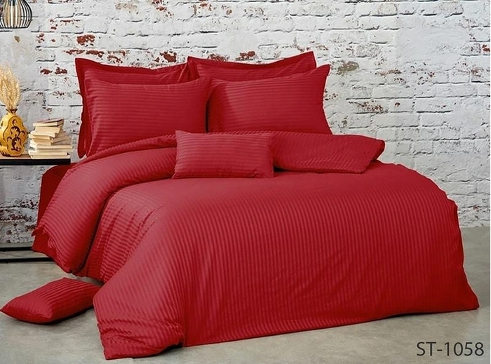 Комплект з страйп-сатин-це один з видів постільної білизни преміум-класу, що відрізняється особливою технологією виготовлення. Виріб є бавовняним полотном, яке характеризується блискучими смужками на обох сторонах. Виготовляється страйп сатин з волокон бавовни 100%. Завдяки цьому тканина міцна, практична, приємна і м'яка.