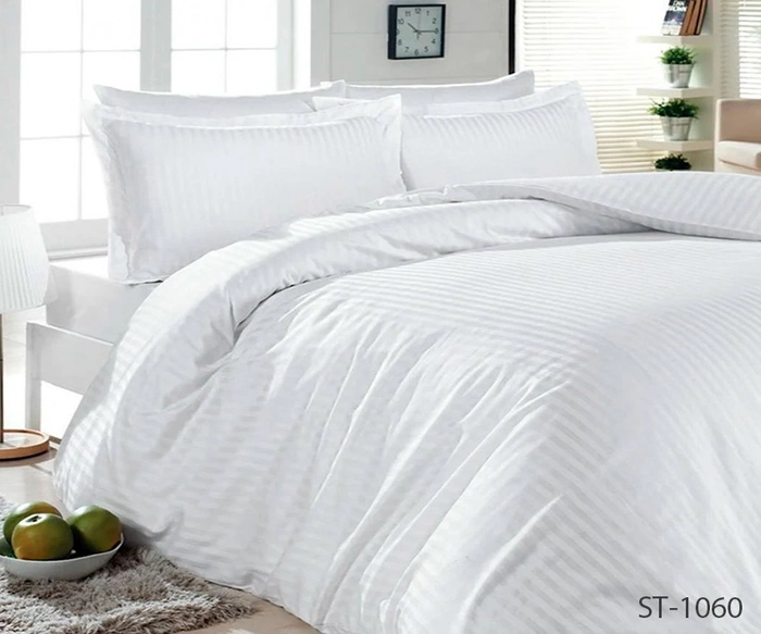 Комплект зі страйп-сатину-це один з видів постільної білизни преміум-класу, що відрізняється особливою технологією виготовлення. Виріб є бавовняним полотном, яке характеризується блискучими смужками на обох сторонах. Виготовляється страйп сатин з волокон бавовни 100%. Завдяки цьому тканина міцна, практична, приємна і м'яка.