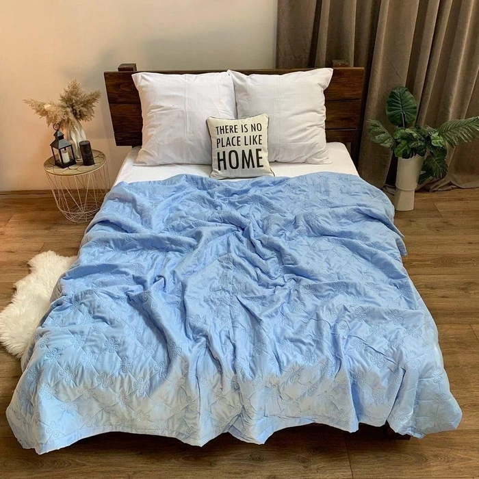 Одеяло-покривало сміливо можна назвати виробом 2 в 1. Якщо вам потрібне тонке літнє одеяло, то ви можете сміливо заправити його у підковдру і користуватися із задоволенням.