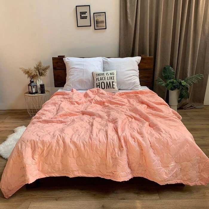 Одеяло-покривало сміливо можна назвати виробом 2 в 1. Якщо вам потрібне тонке літнє одеяло, то ви можете сміливо заправити його у підковдру і користуватися із задоволенням.