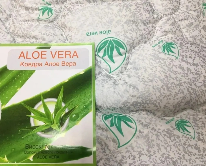 Одеяла «AloeVera» завдяки наповнювачу з ультратонкого волокна з просоченням «AloeVera», мають прекрасні вентилюючі властивості, які дозволяють шкірі вільно дихати, мають антибактеріальні властивості.