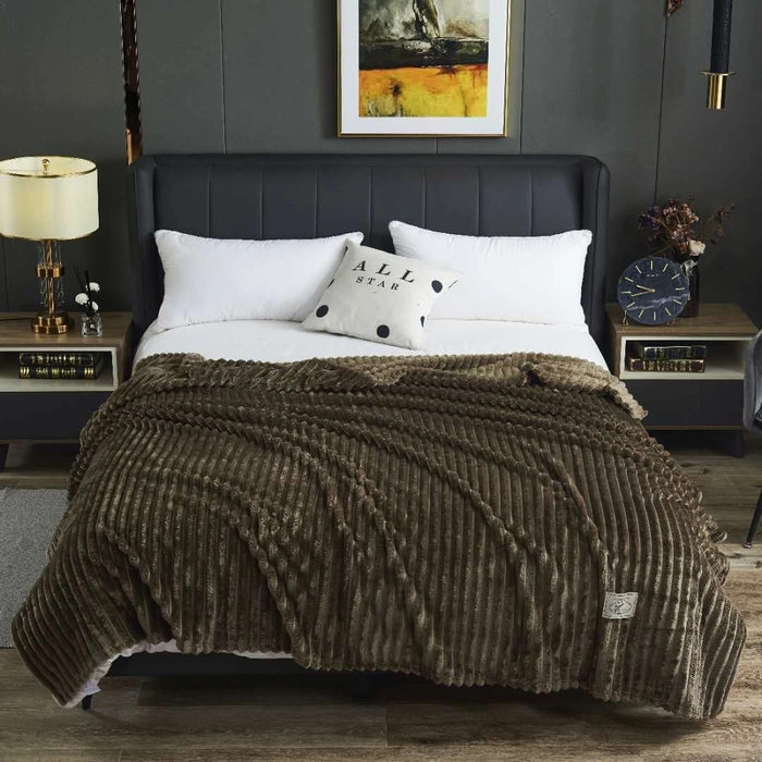 Плед дуже м'який і приємний на ощупь. Його дизайн виробів з тисненням у вигляді смужок. Полотно еластичне, має високу міцність, повітропроникне і чудово зберігає тепло. Має легкий вагу і чудово піддається як ручному, так і машинному пранню в делікатному режимі. Швидко сохне і не змінює своєї початкової форми. Після багатьох прань не линяє і зберігає насиченість фарб.