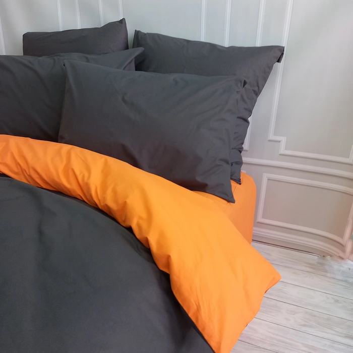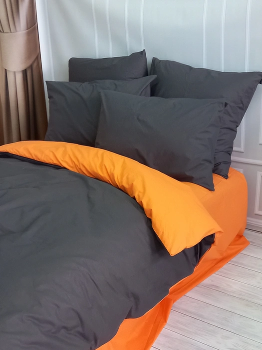 Постільна білизна ДУЕТ Антрацит/Помаранчевий Ранфорс - Сімейний