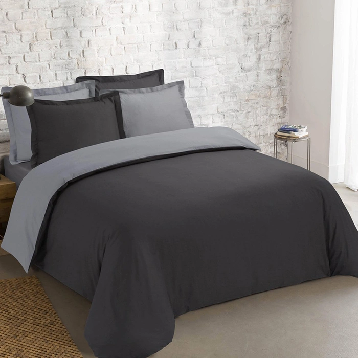 Постільна білизна ДУЕТ Чорний/Сірий Ранфорс - Євро на резинці