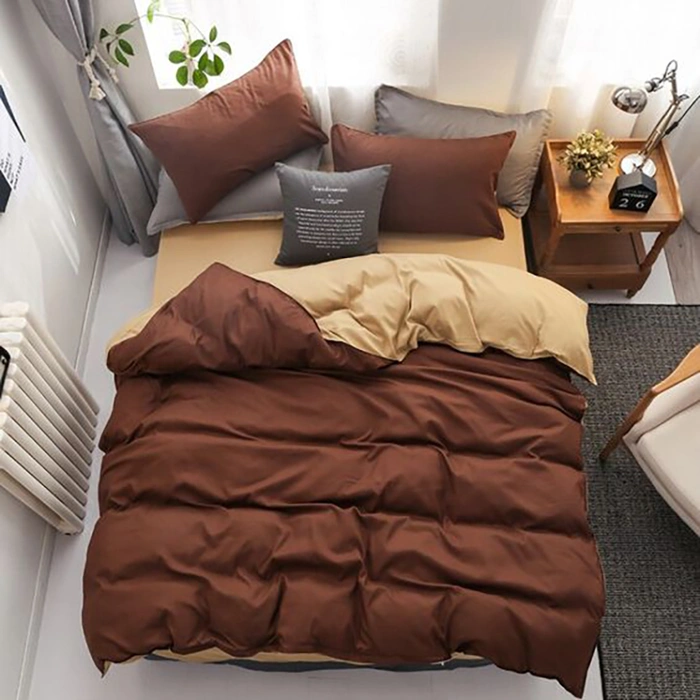Постільна білизна ДУЕТ Коричневий/Крем-брюле Ранфорс - Євро на резинці