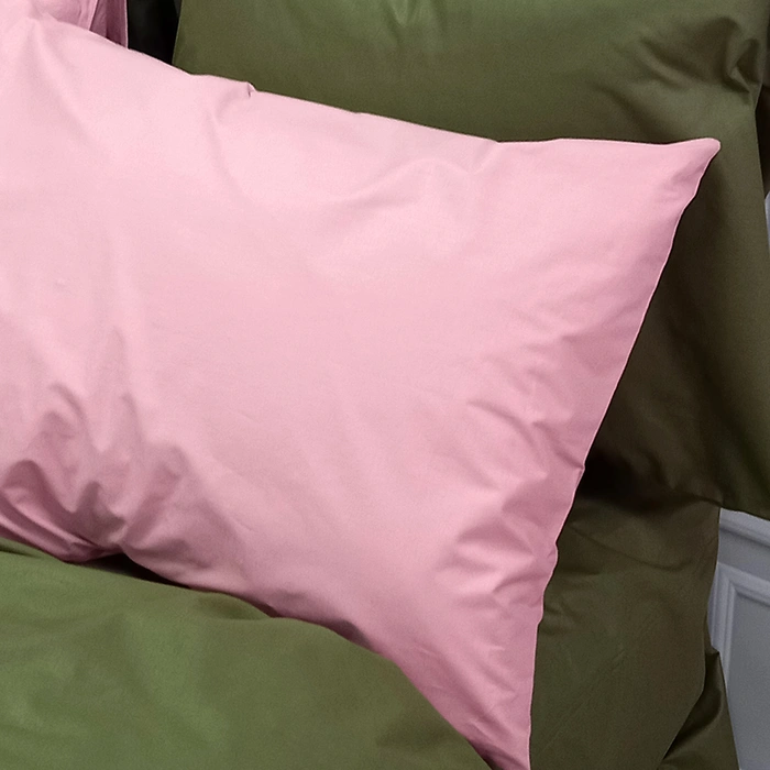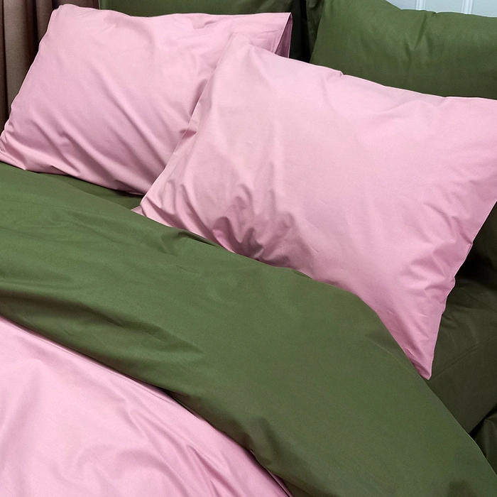 Постільна білизна ДУЕТ Пудра/Темний Хакі Ранфорс - Сімейний на резинці