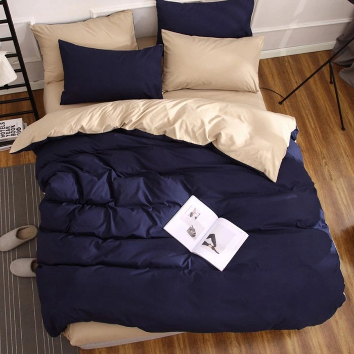 Постільна білизна ДУЕТ Темно-синій/Крем-брюле Ранфорс - Євро на резинці
