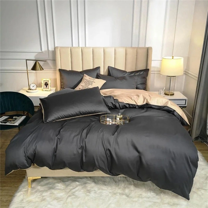 Постільна білизна ДУЕТ ANTHRACITE/DESERT SAND Premium Сатин однотон - Двоспальний