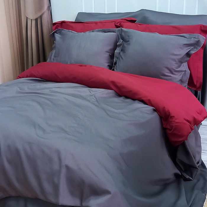 Постільна білизна ДУЕТ ANTHRACITE/WINE BORDO Premium Сатин - Полуторний на резинці