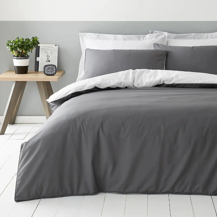 Постільна білизна ДУЕТ Антрацит/Білосніжний Ранфорс - Двоспальний на резинці