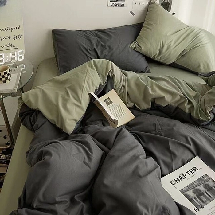 Постільна білизна ДУЕТ Антрацит/Темний Хакі Ранфорс - Євро на резинці