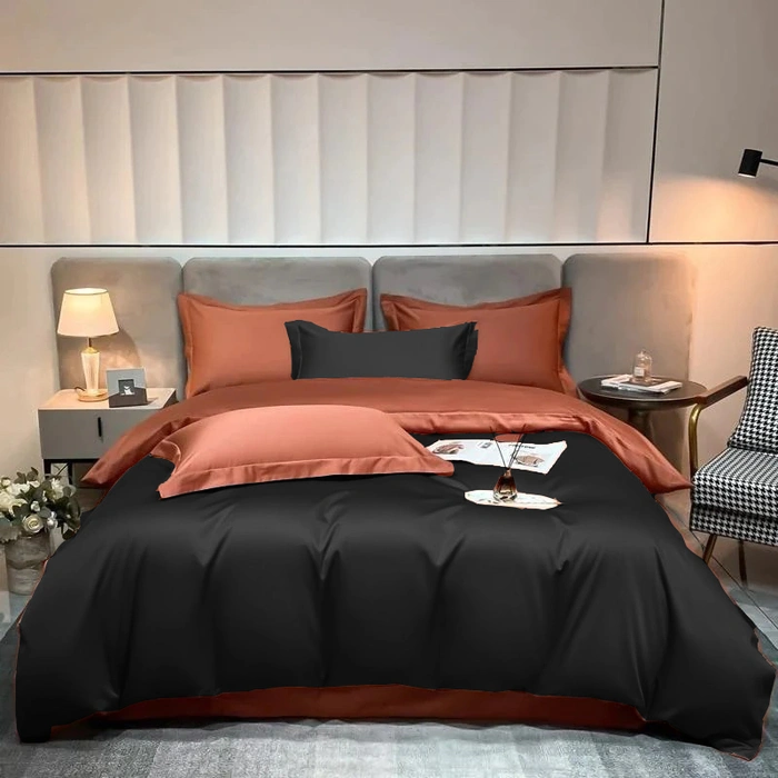 Постільна білизна ДУЕТ BLACK/GRAPE Premium Premium Сатин однотон - Сімейний на резинці