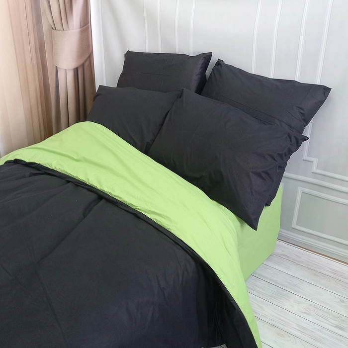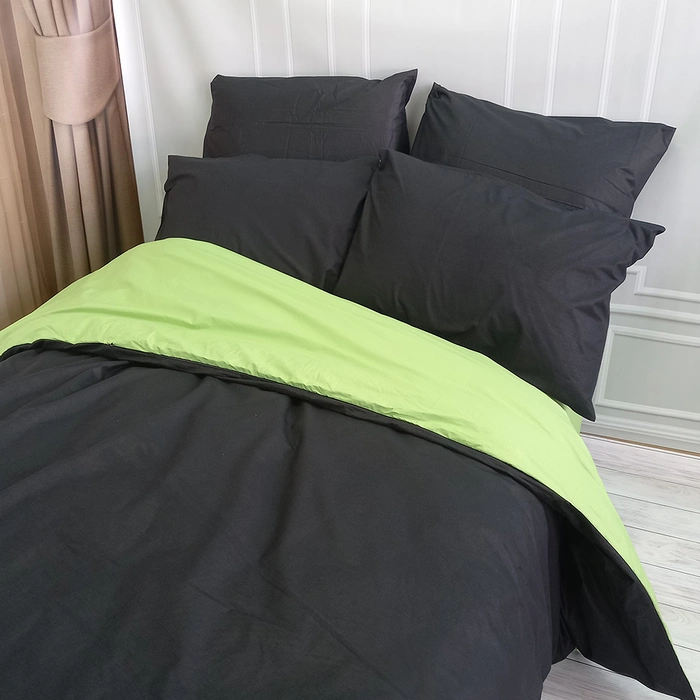 Постільна білизна ДУЕТ Чорний/Фісташка Ранфорс - Євро на резинці