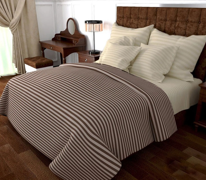 Постільна білизна Дует Коричнево-Молочна Бязь страйп - Полуторний на резинці