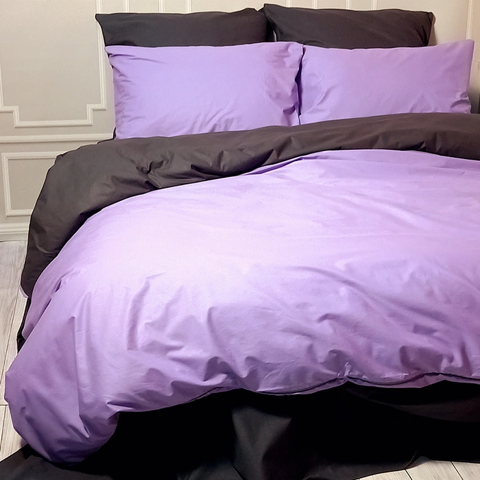 Постільна білизна ДУЕТ Лавандовий настрій/Антрацит - Двоспальний на резинці