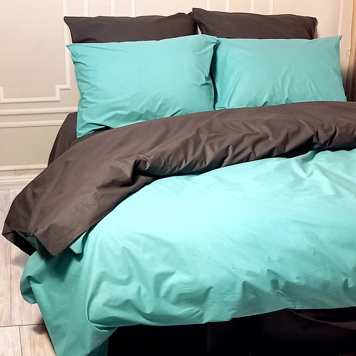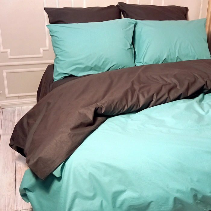 Постільна білизна ДУЕТ М'ятна лагуна/Антрацит - Євро на резинці