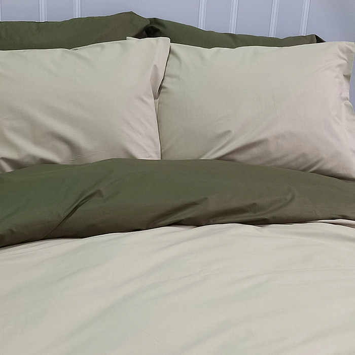Постільна білизна ДУЕТ Світла оливка/Темний Хакі Ранфорс - Євро