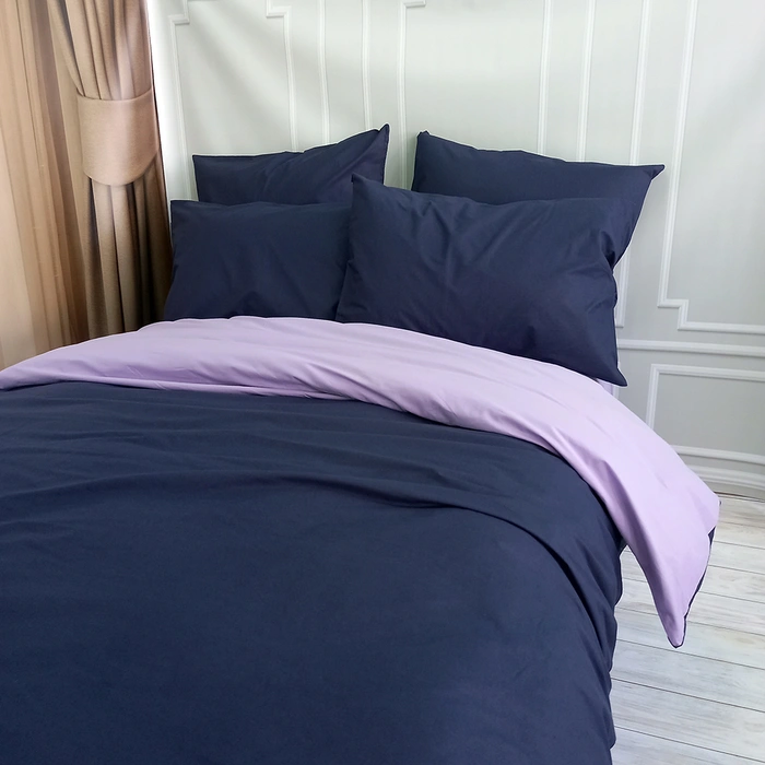 Постільна білизна ДУЕТ Темносинє/Лавандовий настрій Ранфорс - Полуторний