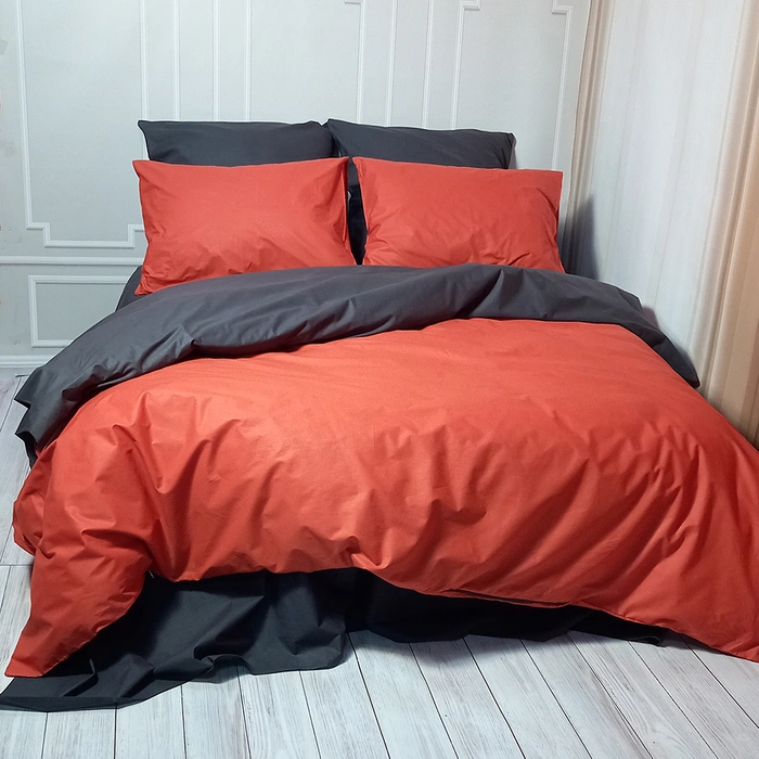 Постільна білизна ДУЕТ Теракот/Антрацит - Двоспальний на резинці