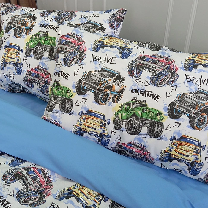 Постільна білизна Монстер трак Ранфорс - Двоспальний на резинці