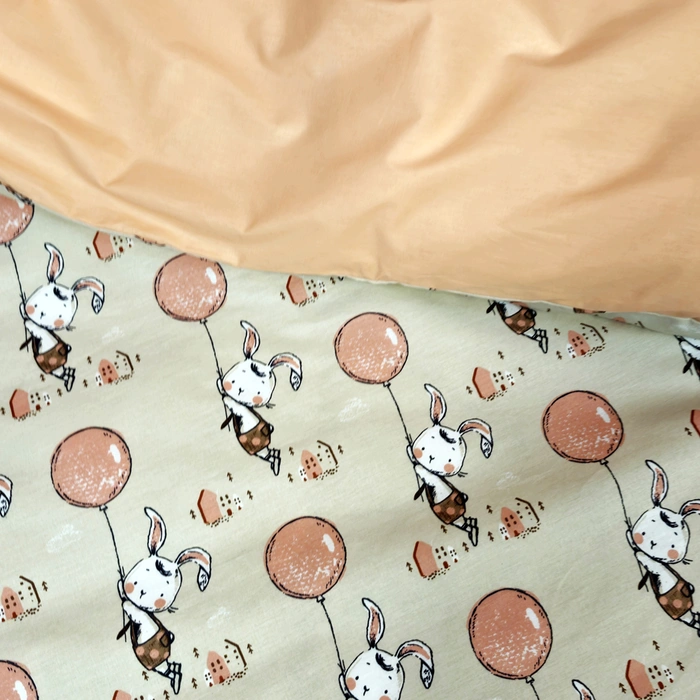 Постільна білизна Персиковий зайчик Ранфорс - Полуторний на резинці