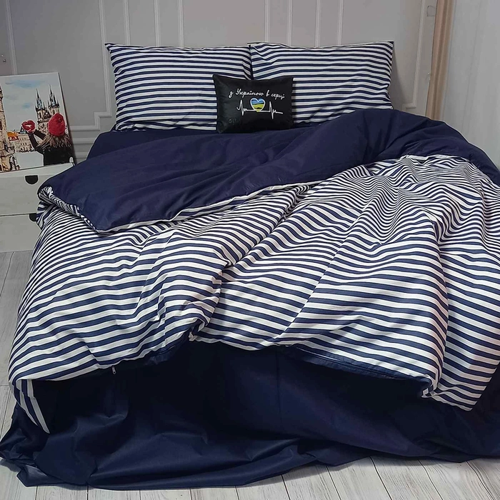 Постільна білизна Смугастий синій Ранфорс - Євро