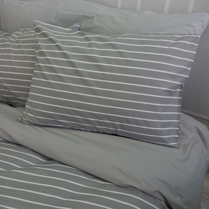 Постільна білизна Смужка сіра Ранфорс - Сімейний на резинці