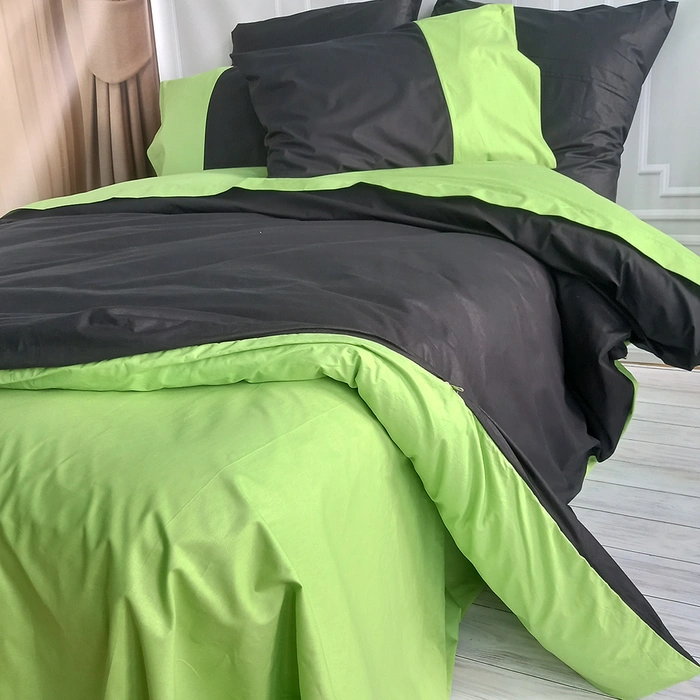 Постільна білизна PREMIERE Чорний/Фісташка Ранфорс - Двоспальний