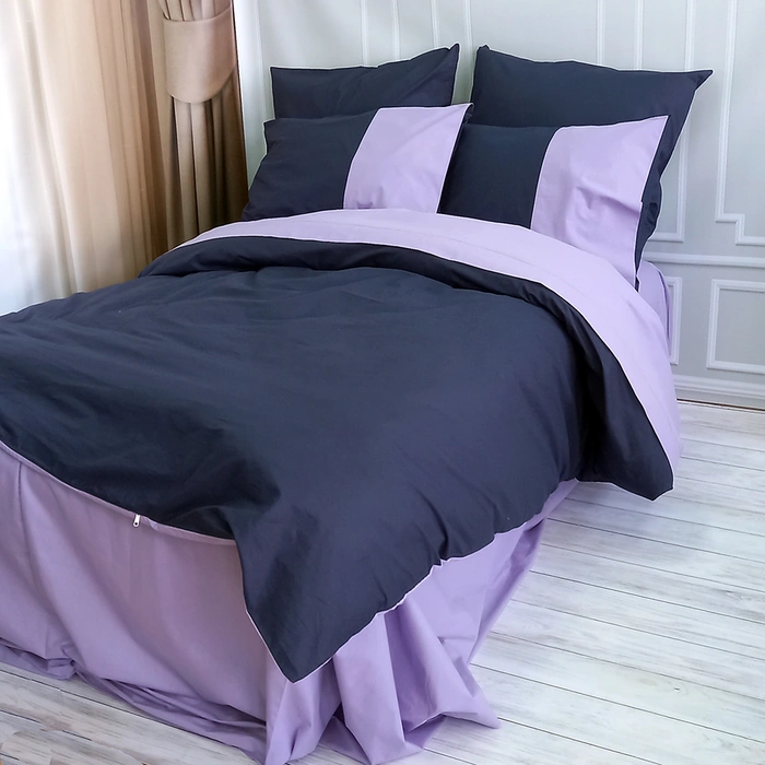 • ДВОСПАЛЬНИЙ комплект: підковдра на блискавці 180х215 см - 1 шт, простирадло 200х220 см - 1 шт, наволочки двокольорові 50х70 см - 2 шт