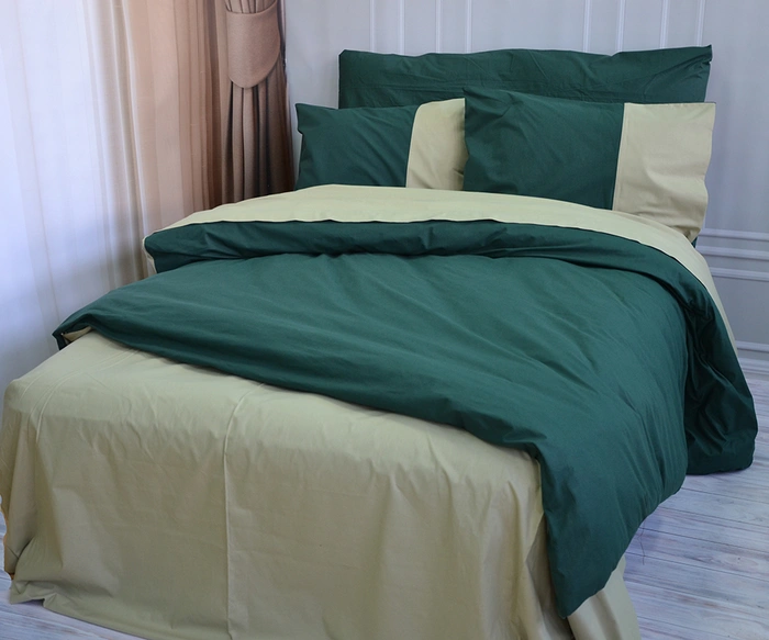 Постільна білизна PREMIERE Темнозелене/Світла оливка Ранфорс - Двоспальний на резинці