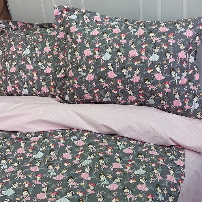 Постільна білизна Балеринки рожеві Ранфорс - Полуторний на резинці