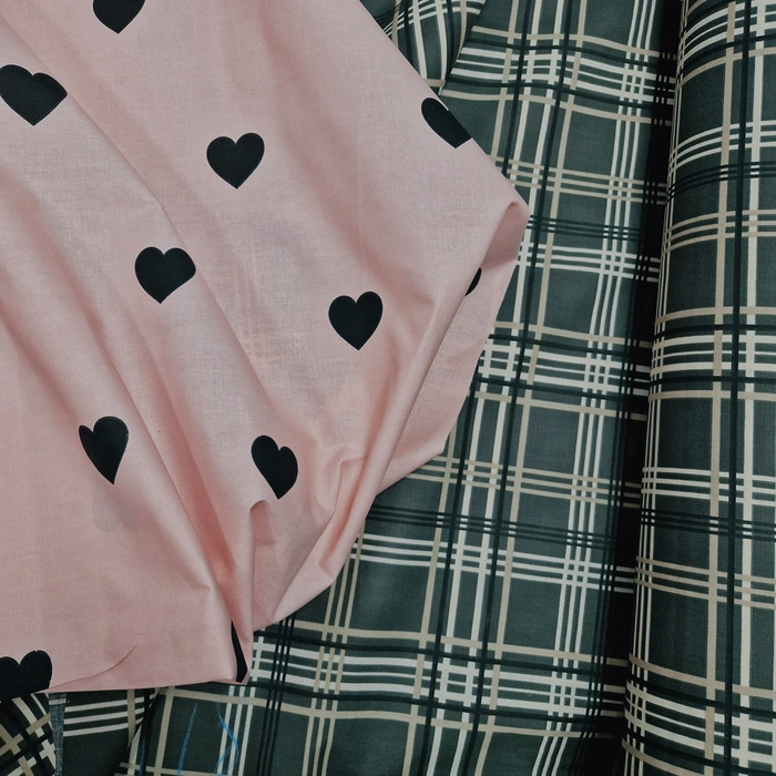 Постільна білизна Сердечки в клітинці Бязь люкс - Євро