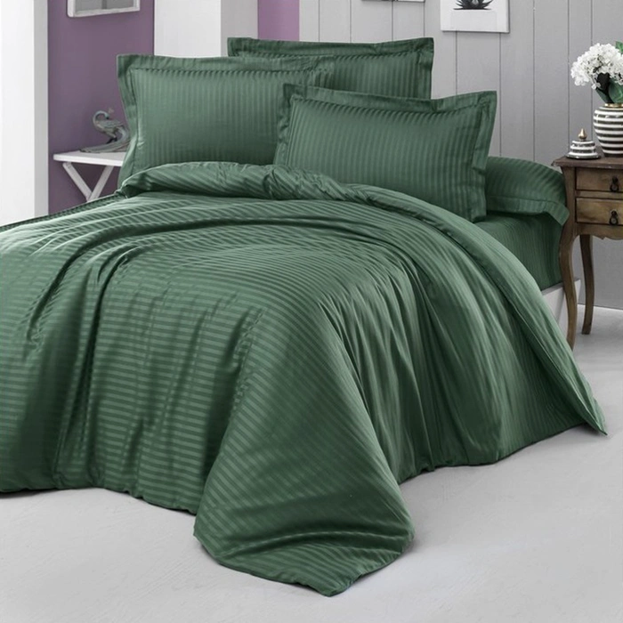 Постільна білизна Темно-зелений Сатин страйп - Євро на резинці