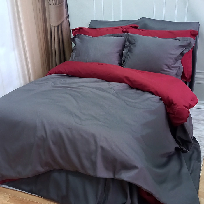 Постельное белье ДУЕ ANTHRACITE/WINE BORDO Premium Сатин - Евро