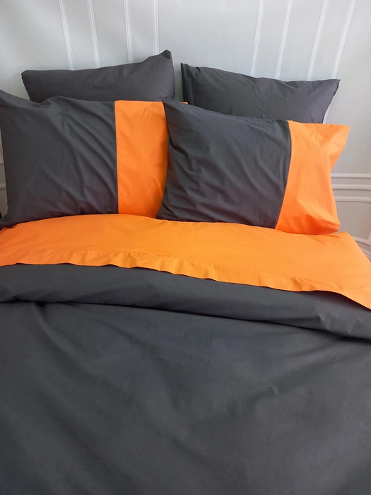 Постельное белье PREMIERE Антрацит/Оранжевый Ранфорс - Евро на резинке