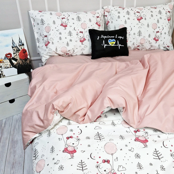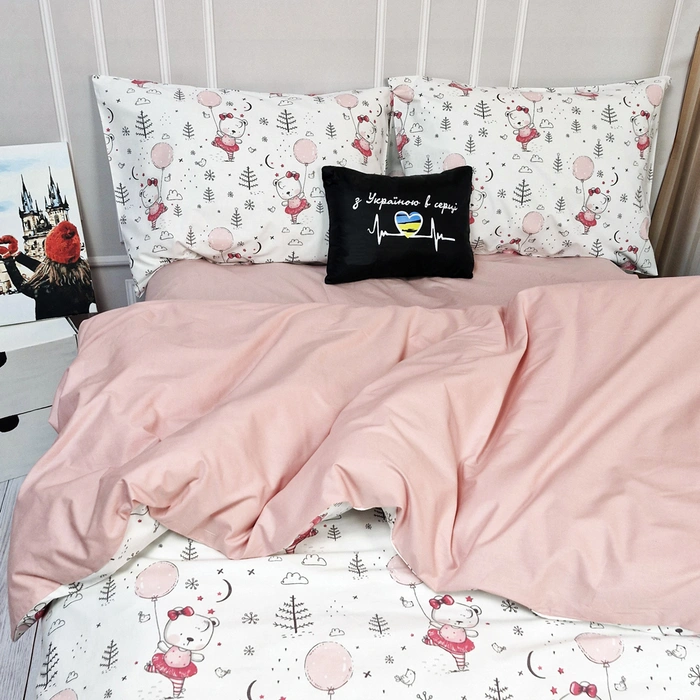 Качественное постельное белье от украинского производителя сшито из 100% хлопковой ткани производства Турция, плотностью 140 г/м2. Будьте внимательны! В комплект входят наволочки без декоративных бортиков (ушек). Возможные дополнительные опции, при заказе напишите в комментариях: * Наволочка на молнии: +30 грн * Наволочка 50х70 см или 40х60 см с декоративными бортиками (ушками) по краю: +40 грн